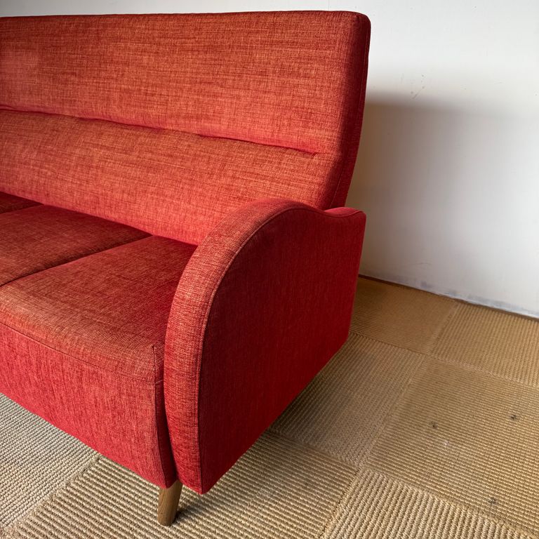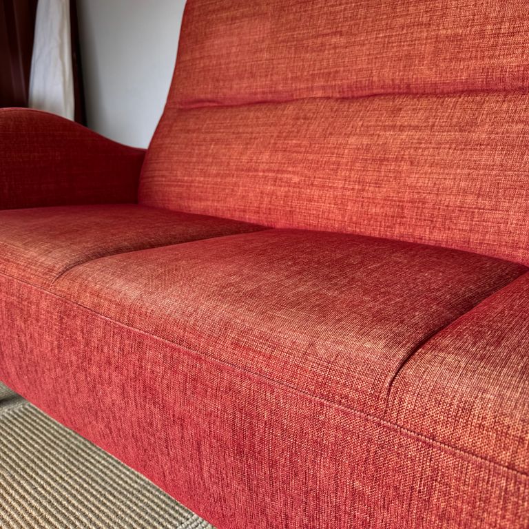 新入荷 STOCK STORE season56-1 / チョッパー 3Pソファ / WELLSPRING original ¥45,100 税込 発送目安日:1–2営業日 この商品は返品/キャンセル/サイズ交換不可になります 注文 サイズ(採寸)情報 質問する お気に入り お電話でもご注文いただけます!お電話の際は 商品番号:1139 をお知らせください。 電話をかける 076-255-7024 W D H SH 1570 750 885 410 単位:mm 商品説明 創業以来、20年にわたり愛され続けるロングセラーモデル最大の特徴は、肩までしっかりと支えるハイバック設計。背中を預けた瞬間、背もたれ下部の絶妙な膨らみが腰にフィットし、自然と姿勢が整います。深くもたれかかっても体が沈み込みすぎず、長時間でも疲れにくい設計です。座面はあえて少し硬めに。読書や映画鑑賞など、リラックスしながらも姿勢を保ちたい時間に最適です。丸みを帯びたアームは、ハイバック特有の重たさを感じさせず、空間に柔らかな印象をプラス。さらに、背もたれの角度に合わせて設計された脚部が、美しいフォルムと安定感を両立しています。ゆっくりと本を読む時間。映画に没入するひととき。“ただくつろぐ”ではなく、“心地よく過ごすための姿勢”まで考え抜かれた一台です。当店では、少しでも長く安心してお使いいただけるよう、表面材のクリーニングを中心に見えない部分まで丁寧にメンテナンスすることで、クッション内部の通気性を保ち、清潔で快適な座り心地を実現しています。専門スタッフによるクリーニング・リペアによって再び息を吹き返したソファーをお楽しみください。提案リビング店舗状態全体クリーニング済※座面部分に若干のヘタリを感じますが、硬めよりも少し柔らかい座り心地がお好みの方へおすすめです。新品価格¥121,440(税込)〜 詳細情報 カラー レッド ブランド STOCK STORE 品番 season56-1 カテゴリ ソファ > 3人掛けソファ 性別 ユニセックス 返品 不可 ラッピング 可能 発送目安日 1–2営業日 配送方法 家財おまかせ便(サイズランク:E)(送料について) お支払い方法 本商品でご利用可能な決済方法は下記となります。各お支払い方法についての詳細はショッピングガイドをご覧ください クレジットカード セキュリティコードとはクレジットカード裏面のサイン欄上部に記載されている数字の一番右の3桁の数字です。アメリカン・エキスプレス・カード提携のクレジットカードの場合、セキュリティコードはクレジットカード表面に記載されている4桁の数字となります。 Amazon Pay 楽天ペイ あと払い (ペイディ) 事前登録不要、クレジットカード登録不要。 メールアドレスと携帯電話番号だけで、今すぐ購入可能。 お支払いは翌月27日までに、コンビニ払い・銀行振込・口座振替で。 1か月に何度購入しても、お支払いは翌月まとめて1回でOK。 さらに、ペイディアプリから本人確認をすると、分割手数料無料*の3回あと払い**、ご利用可能額の確認、使い過ぎを防止する予算設定など、便利な機能がご利用いただけます。 *口座振替・銀行振込のみ無料 **1回のご利用金額が3,000円以上の場合のみ利用可能 銀行振込 サイズ(採寸)情報 W D H SH 1570 750 885 410 単位:mm このアイテムをシェア この商品について質問する